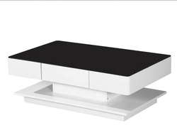 โต๊ะกาแฟ MDF มันวาวสูงสีขาวทันสมัยพร้อมกระจกนิรภัย